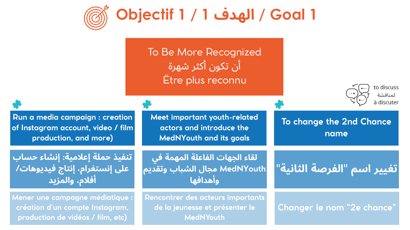 Le MedNYouth est aussi un moyen de rendre visibles les réalités des jeunes en leur permettant : la participation à des évènements régionaux et internationaux, les prises de parole publiques, les rencontres avec des décideurs, mais aussi la transmission de messages auprès de leurs pairs au niveau local.